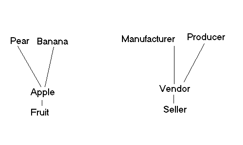 Here we see that synonyms will be related, as will super sets (fruit is a superset of apple). So it is possible, although at a lower weight, to receive a page with banana seller, Since we are modeling the entire set of English words (and if we don't have a node in the graph, we default to keyword search), we can easily modify this with AI-like metadata later on as we standardize the relationship between words as a part of the query process i.e. restaurant <located in> california. There are a few reasons why this is a great approach to the search problem.